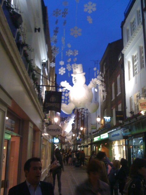 Just off Regent Street, the shops on Carnaby Street look out onto something more festive… Loads of giant snowmen. Though to me, they remind me of the giant marshmallow man in Ghostbusters.